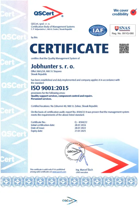 1) Našim hlavným záväzkom je poskytovať moderné, spoľahlivé a kvalitné služby v oblasti kontroly kvality a opravy dielov a personálnych služieb za primerané ceny.